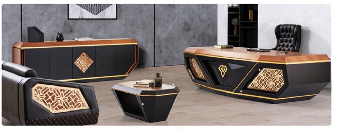 میز مدیریتی M03 یک انتخاب لوکس و مدرن برای دفاتر مدیریتی است.با ابعاد 200 در 90 طراحی چشمگیر با ترکیب رنگ مشکی و طلایی و استفاده از طرحهای هندسی زیبا، این میز را به یک المان دکوراتیو ارزشمند در دفتر شما تبدیل میکند. سطح وسیع و کاربری آسان آن، فضای کافی برای فعالیتهای روزانه فراهم میآورد.