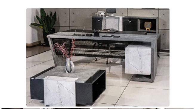 میز مدیریت مدل هارمونی ترکیبی از سنگ مصنوعی، MDF باکیفیت و پایههای فلزی مقاوم است که جلوهای خاص و لوکس به دفتر مدیریت میدهد. طراحی هندسی و تضاد رنگی بین سطوح سنگی و مشکی، هارمونی خیرهکنندهای ایجاد کرده که مناسب فضاهای مدیریتی مدرن و خاصپسند است.