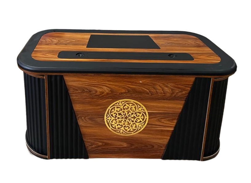 میز کارمندی M08 با طراحی خاص و الهام گرفته از سبک کلاسیک و مدرن، گزینهای فوقالعاده برای ایجاد محیطی حرفهای و شیک در دفاتر کار است. روکش چوبی مقاوم همراه با تزئینات مشبک طلایی در قسمت جلویی میز، جلوهای متمایز به آن داده است.