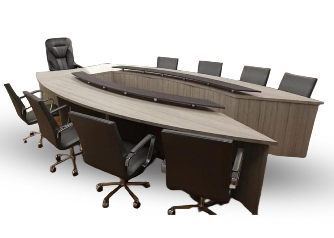 میز کنفرانس مدرن با طراحی منحنی و ابعاد بزرگ، بهترین انتخاب برای برگزاری جلسات حرفهای است. این میز با فضای کافی برای چندین نفر، امکان برقراری ارتباط بهتر بین اعضای جلسه را فراهم میسازد.