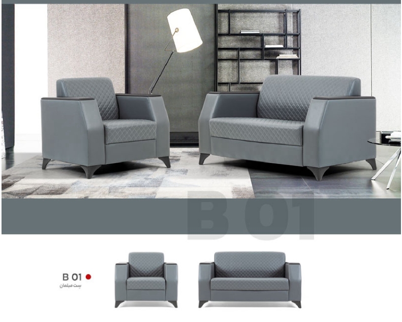 نیمست B01 شامل یک مبل دونفره + دو تکنفره است و یکی از بهترین ستها برای فضاهای رسمی، مدیریتی و لابیهای لوکس محسوب میشود. ظاهر ساده اما شیک، کیفیت ساخت بالا و راحتی عالی این نیمست را به انتخاب محبوب شرکتها تبدیل کرده.