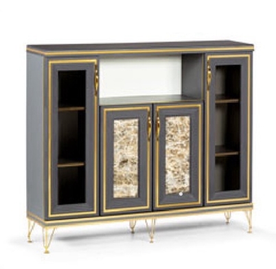 کتابخانه مدیریتی مدل M01 مکملی شیک برای میز مدیریتی همین مدل است. طراحی خاص با ترکیب رنگ تیره، قاب طلایی و جزئیات سنگی، فضای اداری شما را منظم و جذاب میکند. این کتابخانه با طبقات و بخشهای جادار، فضای کافی برای نگهداری کتاب، زونکن و لوازم دکوری فراهم میآورد.